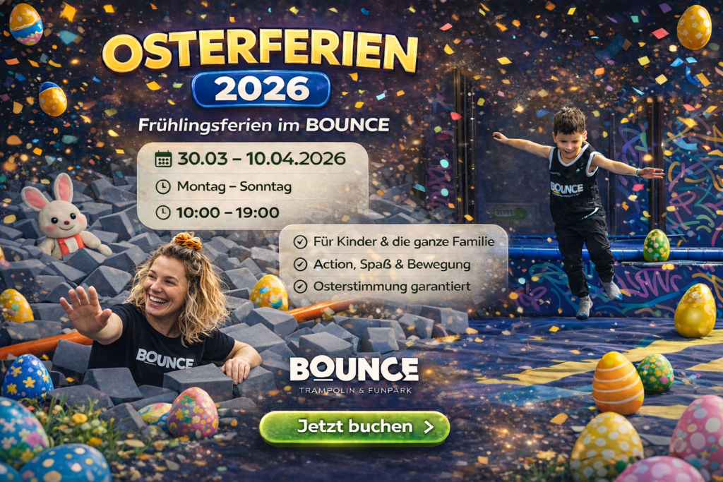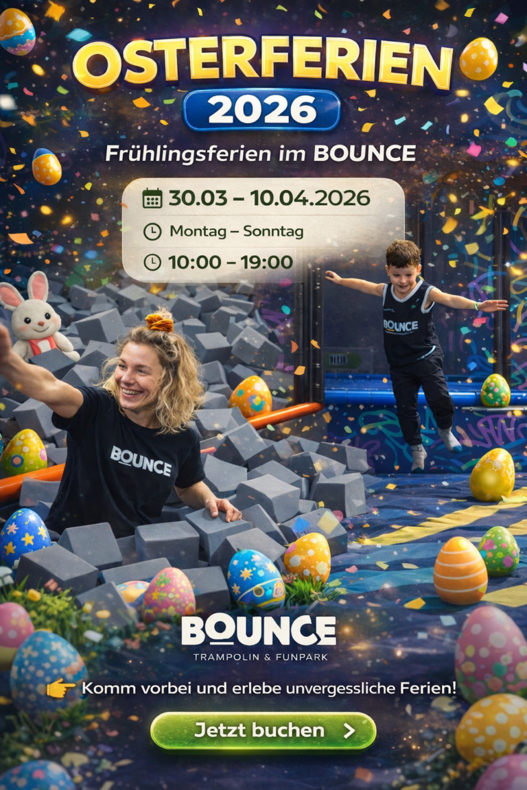 Wir glauben an die Bedeutung von Familienzeit und freuen uns darauf, euch beim FAMILY BOUNCE zu begrüßen – wo Spaß und Zusammenhalt im Mittelpunkt stehen!
